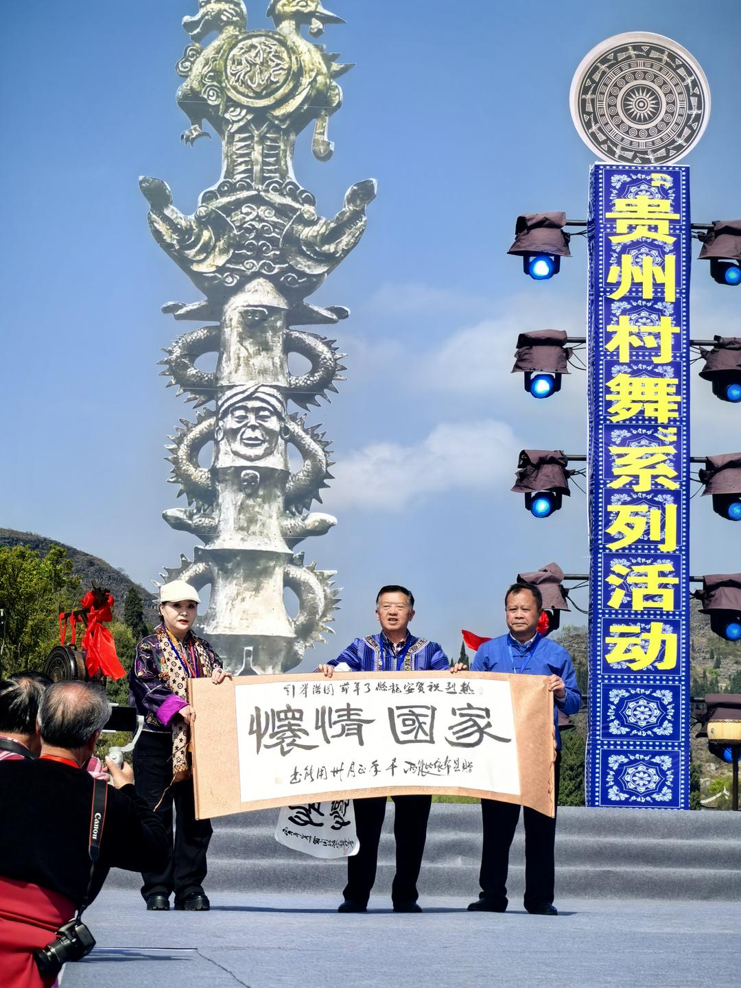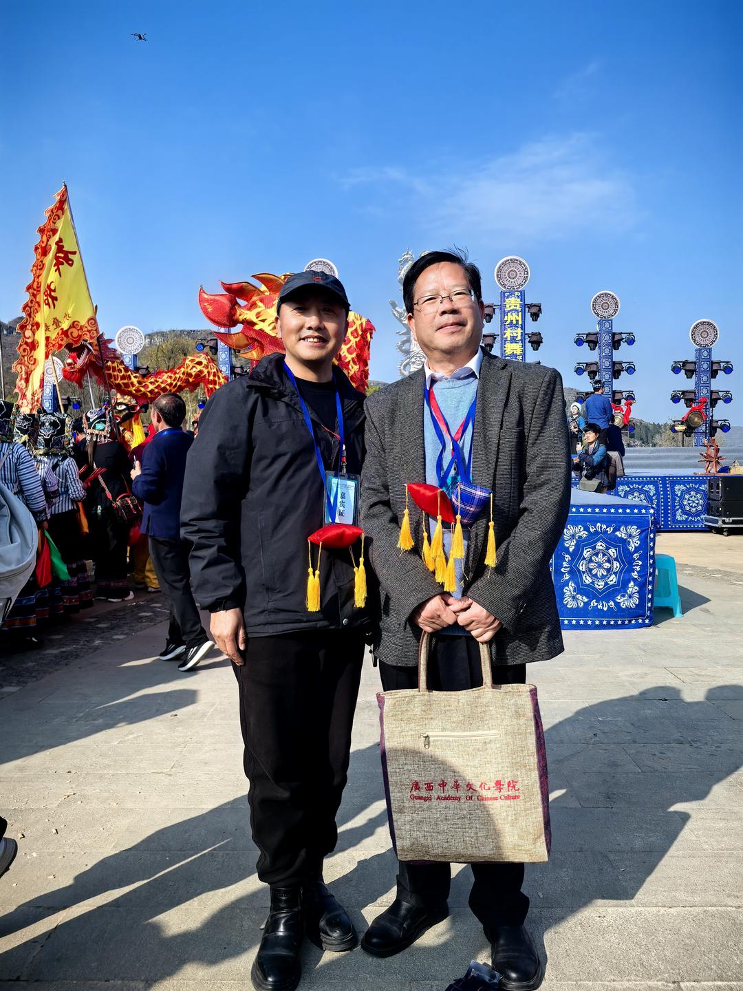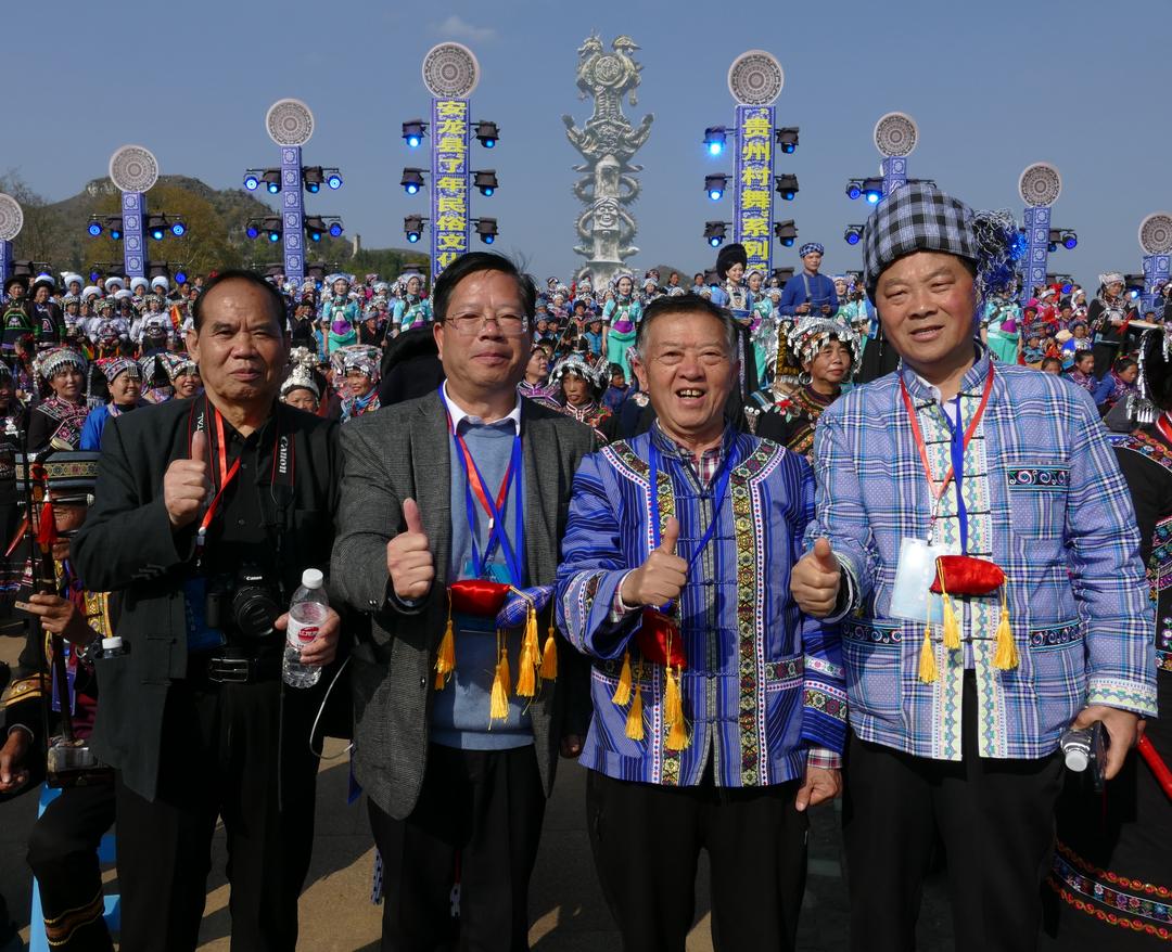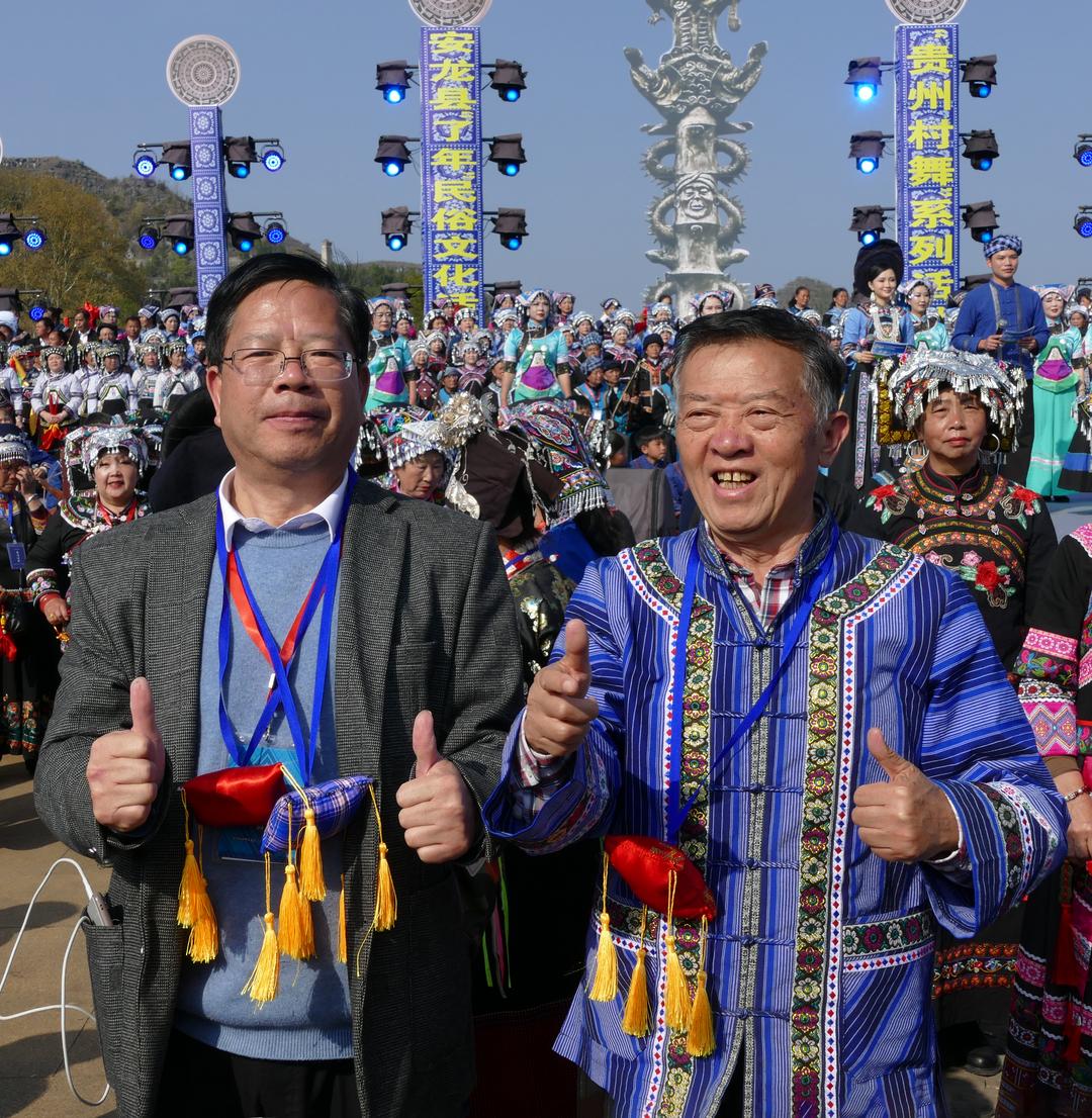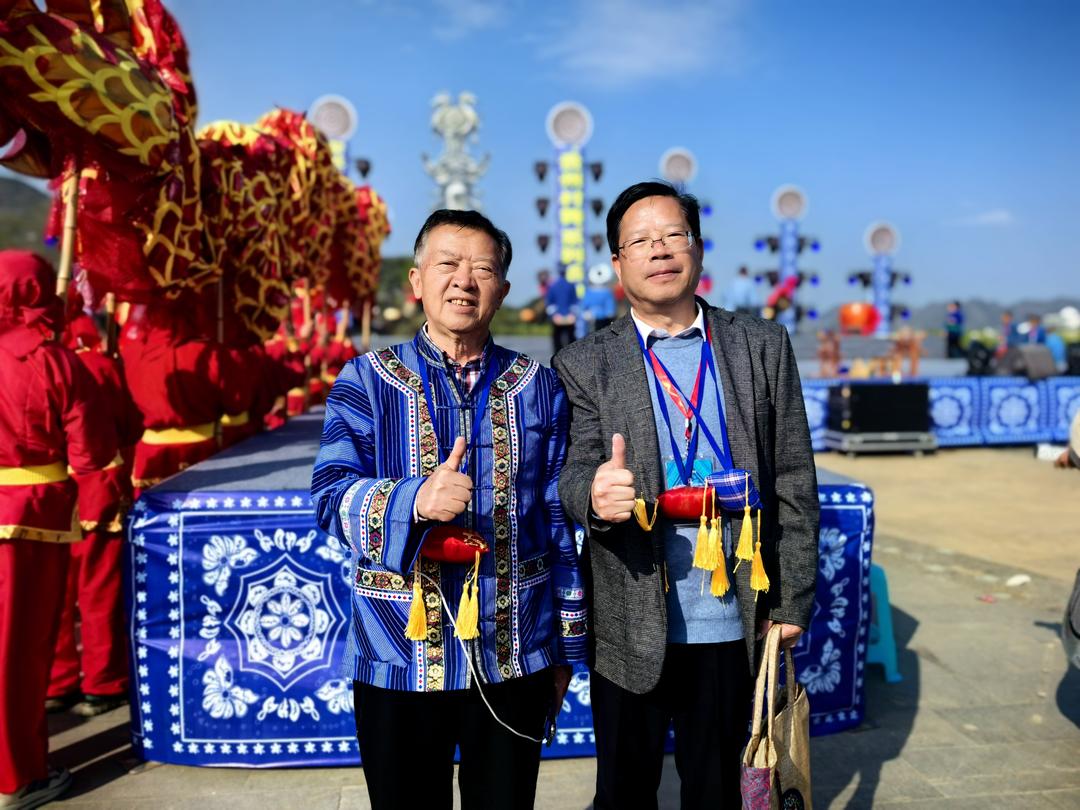 黔西南布依族苗族自治州人民政府原副州长罗用能向安龙县布依学会赠送“了年,家国情怀”书法2幅;黔西南布依族苗族自治州文联原主席、贵阳市观山湖区布依学会会长韦安礼代表学会赠送了“展示民族风彩 传承文明新风”的锦旗。中国龙网、窗口网、北京大学未名湖文学社、未名湖艺术研究所、燕园书画研究院等省内外20多家融媒体记者、学术团体负责人,以及几十名网络达人、自媒体主播到现场进行播报。当晚,半水广场燃起了熊熊篝火,欢天喜地的各族群众和嘉宾载歌载舞,讴歌盛世,咏唱中华,团结一心,热闹非凡。
