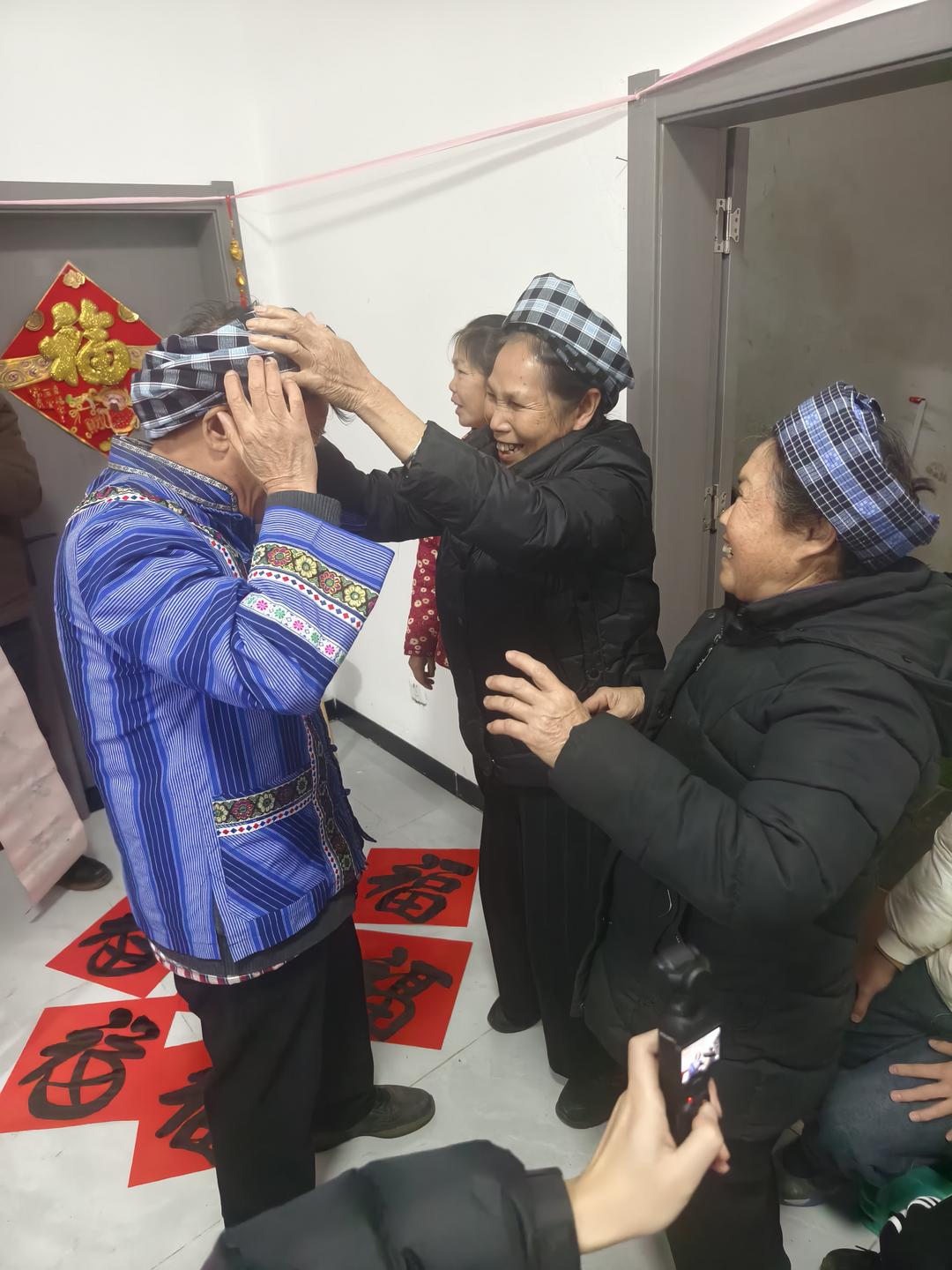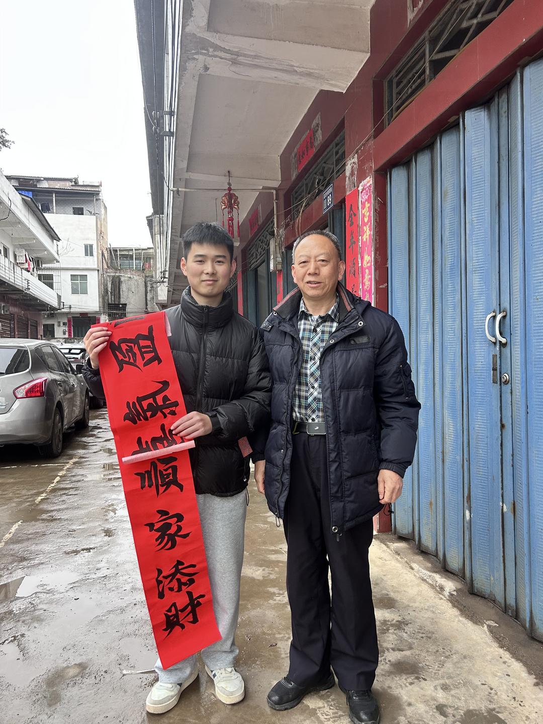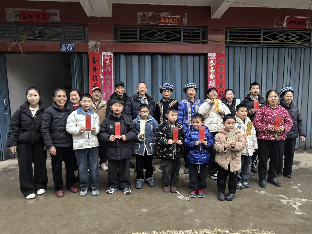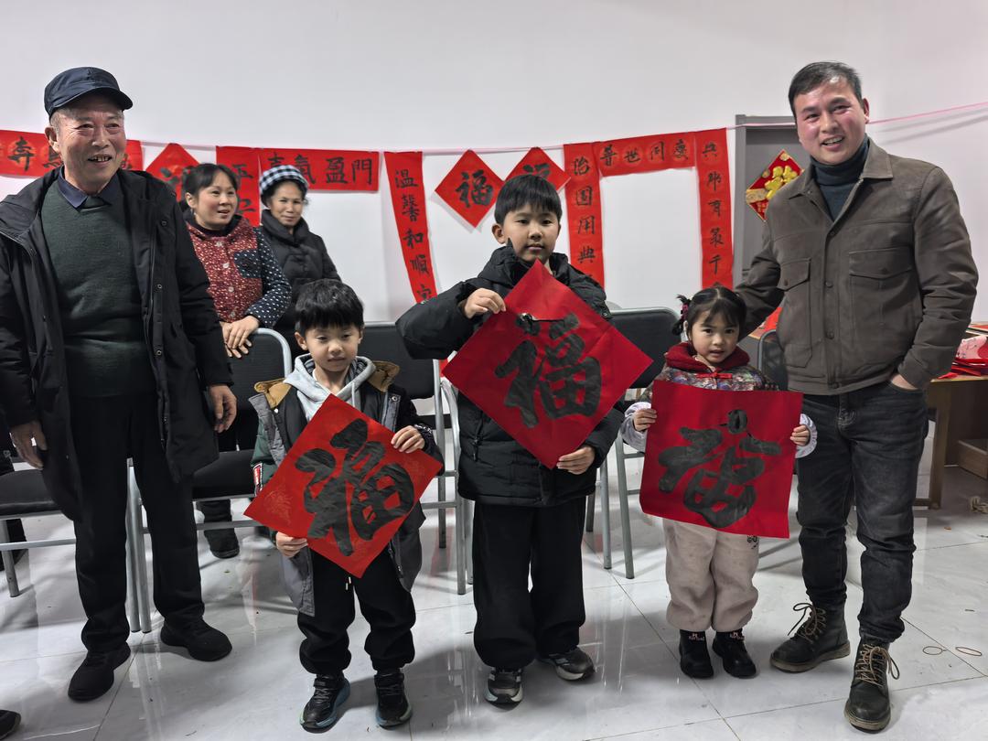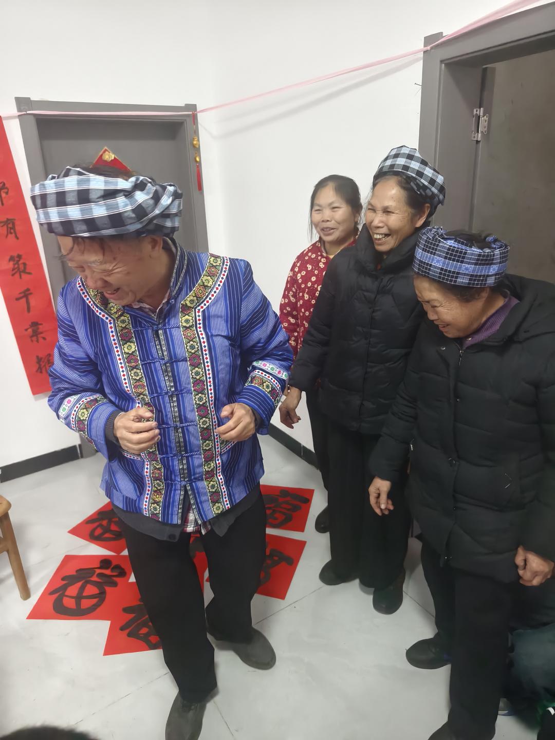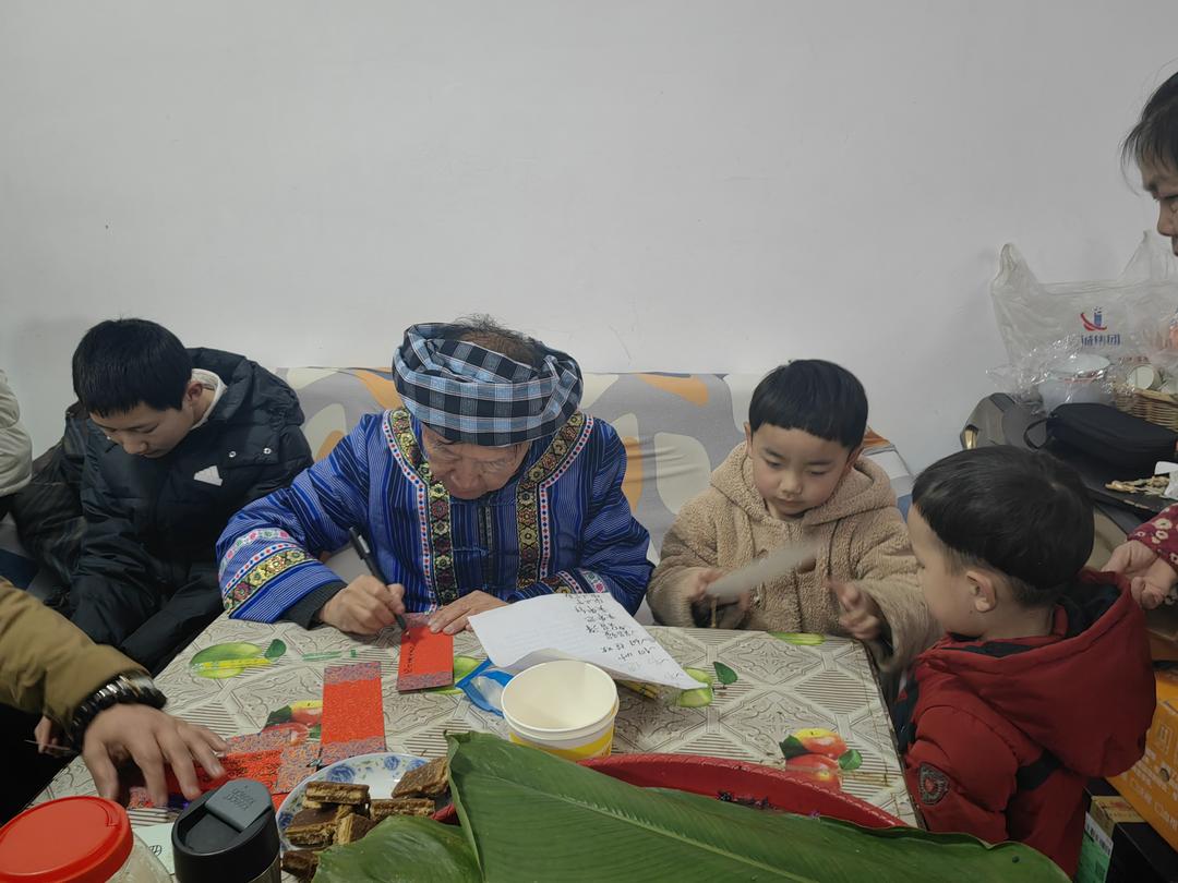 当天下午,在贵州省有关部门退休的罗用能、吳兴荣、吕建明、李玉栋、谌东平等几位老同志,深入贵阳市花溪区金竹镇几十户新市民家中义务书春,送上美好的祝福。据了解,这几十户新居民,是当年从黔西南州望谟县库区搬迁的部分移民,他们到贵阳以后,安居乐业,享受幸福生活。
