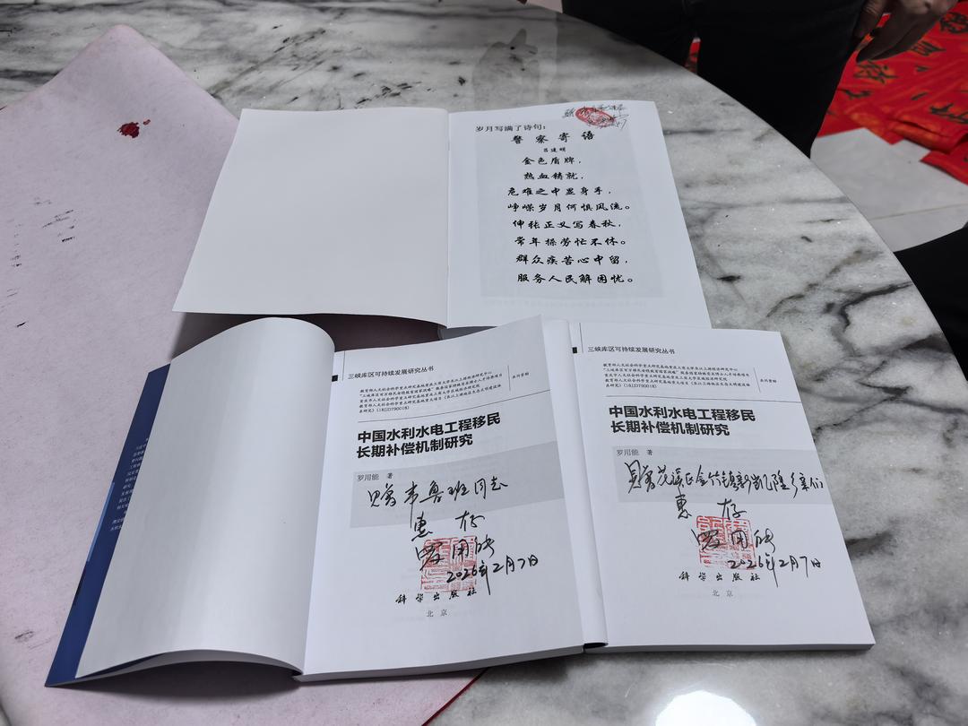 同时,罗用能先生向乡友赠送了个人科研专著:《中国水利水电工程移民长期补偿机制研究》(系科学出版社出版发行)。