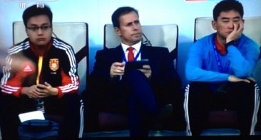 凤凰体育讯 亚洲杯预选赛小组赛最后一战,中国队做客1-3不敌伊拉克,此前,佩兰已经正式出任国足主帅,因此,此役是傅博前台指挥,而佩兰垂帘听政。但在比赛中,诡异的一幕出现,傅博坐在教练席上无精打采,即便落后也无动于衷。而佩兰手中拿着笔和笔记本,似乎在记录着什么,这场比赛到底谁指挥,有没有人指挥,看上去十分诡异。最后时刻,两人变成了同时指挥。